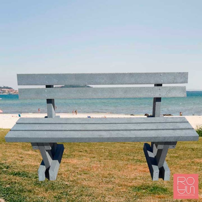 El banc Montgomery un seient elegant i atractiu fabricat en plàstic reciclat, en el color natural, que resulta un acabat semblant al de la fusta.