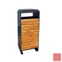 La paperera metàl·lica per exteriors amb frontal de amb llistons de fusta de la sèrie Hèlix, amb línies senzilles però a la vegada elegants, pensada per exterior i amb cobriment en fusta a la part frontal. Gràcies a la seva capacitat de 80 litres, permetrà un buidatge mes espaiat en el temps.