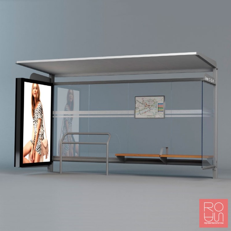 Marquesina d'autobús mod. New IPE composta per columnes rectangular d'acer al carboni de 100x3 mm formen la estructura principal i única del suport.