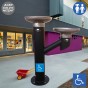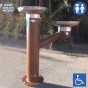 La font per beure adaptada FH-02 garanteix durabilitat, estètica i funcionalitat. Està fabricada combinant l'acer galvanitzat en calent termolacat (color a triar segona carta Ral) amb acer inoxidable AISI 304 (piques, adorn central i cargols).
