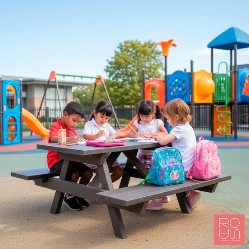 La nostra Taula de Pícnic Mini és la solució ideal per equipar patis de col·legis, escoles bressol i parcs infantils, combinant un disseny atractiu amb una resistència excepcional. Fabricada íntegrament amb plàstic 100% reciclat, aquesta taula no només contribueix a la sostenibilitat ambiental, sinó que ofereix una durabilitat sense igual en exteriors, dissenyada per al gaudi segur dels més petits.