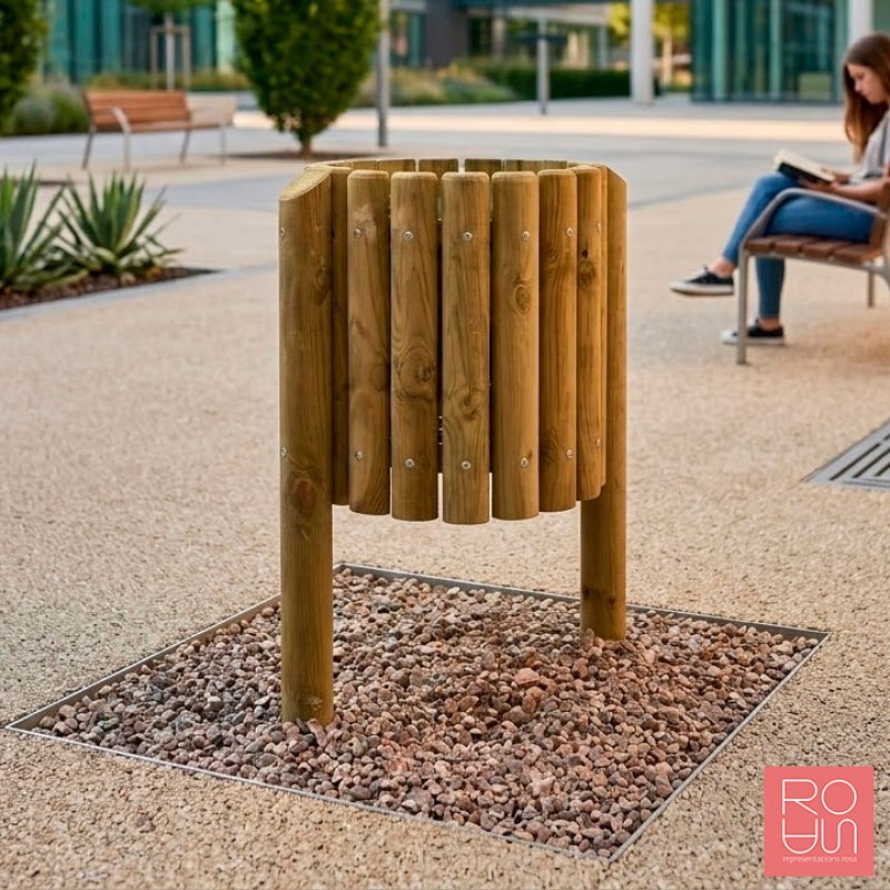 La Paperera de fusta model Golf rústica sense tapa representa la unió perfecta entre resistència tècnica i disseny orgànic. Pensada per integrar-se sense impacte visual en entorns naturals, la seva estructura circular amb acabat en fusta de pi d'alta qualitat la converteix en l'opció preferida per a ajuntaments, càmpings i àrees recreatives.