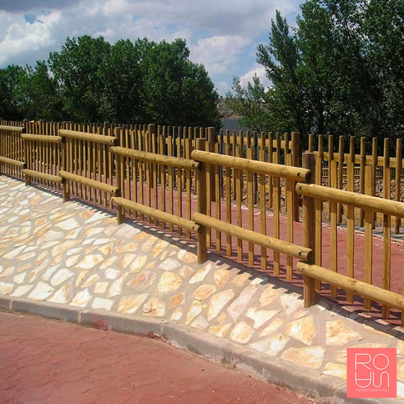 . Composada per rotllos verticals de 1,5 mt de llargada i diàmetre de 10 cm, els quals van subjectes a un entramat de fusta compost per dos mitjos rollissos/grassons horitzontals de 200 cm de llarg i un diàmetre de 10 cm i 17 mitjos rollissos/grassons.