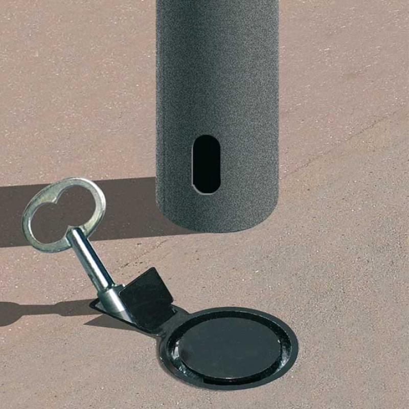 - Bloqueig i desbloqueig amb clau triangular d'11 i passador tipus cargol: la pilona es queda perfectament estable.