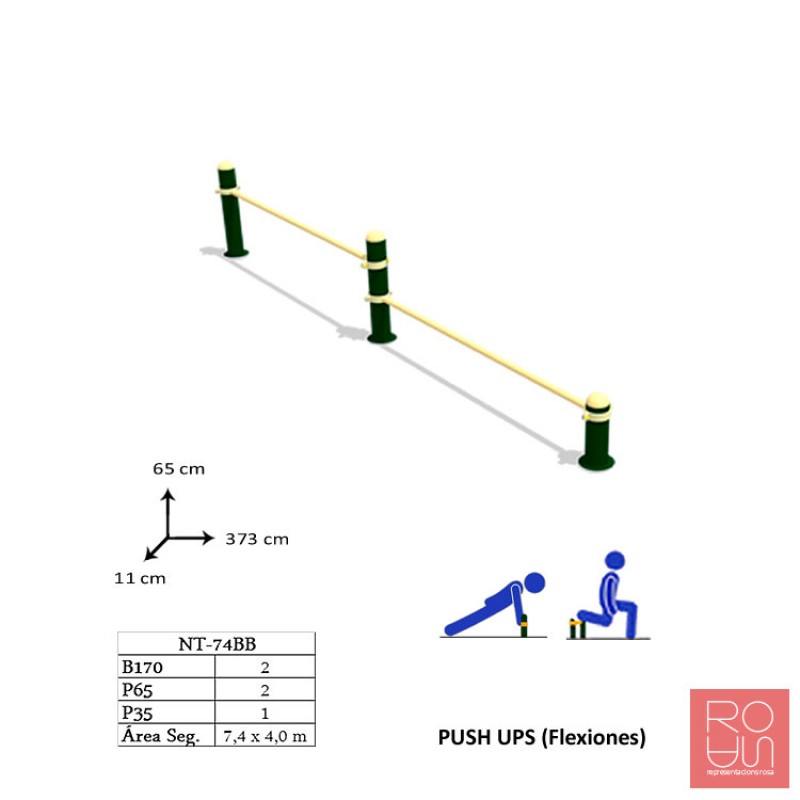 Barres baixes NT-74 BB Els parcs de Calistènia són cada vegada més habituals i són utilitzats per joves. En ells es poden realitzar exercicis a partir d'elements estàtics que ajuden a desenvolupar la força i enfortir els músculs.