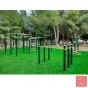 Aquest pac inclou: banc, espatllera, escala doble, flexió paral·leles, paral·leles baixes, barra baixa, paral·leles triple, pòrtic, snake, dominada, corda, anelles i barra L.