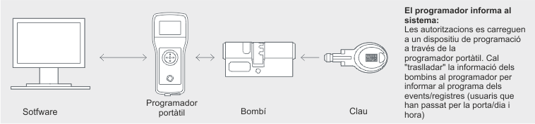 La programació dels accessos s'efectua al programari i es transfereix als diferents components emprant el programador portàtil.