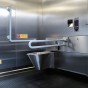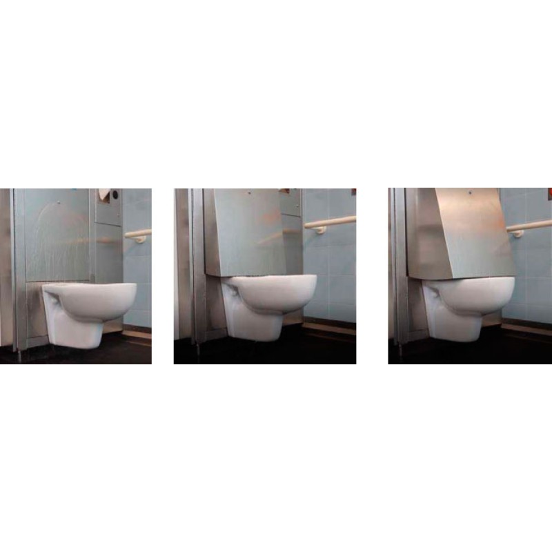 . Rentat, higienització i assecat de tot el servei higiènic a través del moviment del sistema de paret col·locat al darrere de la tassa del WC que garanteix la eliminació de gèrmens i bacteris evitant la seva dispersió a l'espai de l'usuari. Temps requerit 30 segons. La tassa pot ser de ceràmica o d'acer inoxidable.